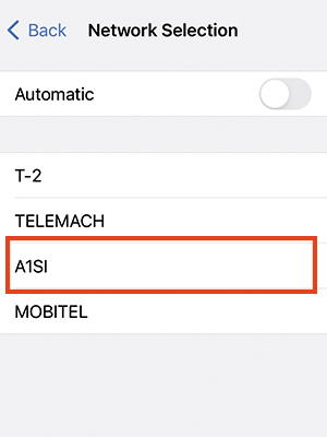 6. Med ponudniki iz seznama Razpoložljiva omrežja izberite omrežje A1 SI. Ta korak opravite, tudi če je omrežje A1 SI označeno kot "Prepovedano omrežje".