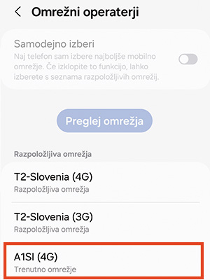 Če med "Razpoložljivimi omrežji" ni na voljo A1 SI, izberite omrežje Hofer, HoT ali BOB. Vsa omrežja so last podjetja A1 in delujejo isto kot omrežje A1 SI.
