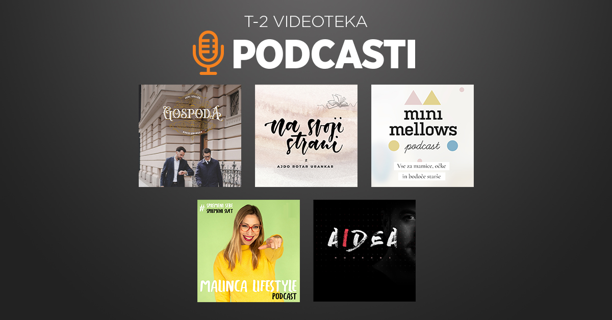 T-2 TV pa ne ponuja le filmov in serij ampak še mnogo več. V videoteki boste našli trenutno najbolj zaželene slovenske podcaste. Spremljate lahko dialoge Klemena Selakoviča ter se pustite zapeljati v svet knjig z znanimi osebami v podcastih Ajde Rotar Urankar. Mlade mamice in očki bodo navdušeni nad podcastom Minimellows, Gospoda Jure Godler in David Urankar govorita o vsem, kar je pomembno, pa tudi o tistem, kar ni. Nikakor pa ne gre spregledati še Malince in njenih lifestyle podcastov.