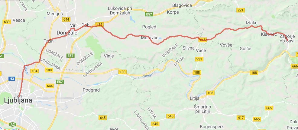 Od začetka v Ljubljani se vozimo skozi Trzin, Domžale, Dob in Krtino, vse do Moravč. Po rahlem klancu nadaljujemo vse do Kandrš, kjer sledi spust mimo Razpotja, vse do Izlak. Nadaljujemo skozi Spodnje Izlake proti Zagorju, ki je tudi konec naše kolesarske poti.