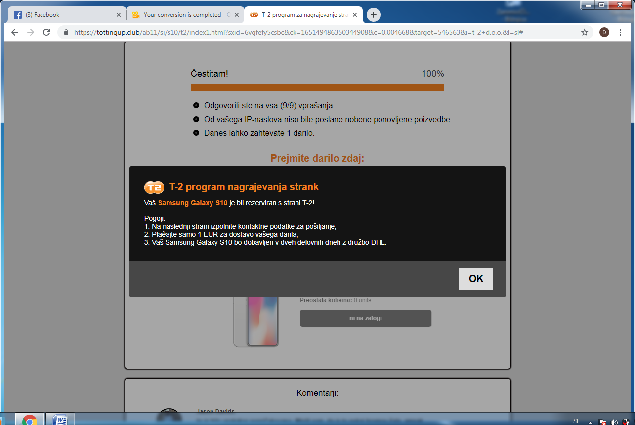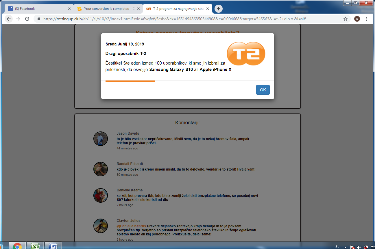 Na spletu kroži lažna nagradna igra T-2. V nobenem primeru ne izpolnjujte podatkov, saj bodo lahko uporabljeni za zle namene.