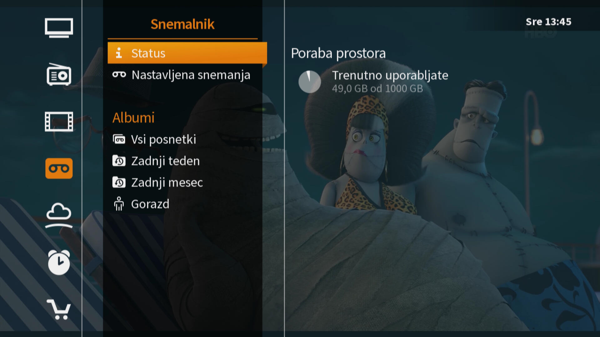 Del funkcije časovnega zamika je tudi snemalnik. Uporaba je res enostavna, in čeprav si lahko zamujene TV vsebine ogledate s časovnim zamikom, lahko s snemalnikom nastavite recimo ponavljajoče TV vsebine, ki vas bodo vedno počakale v vašem prostoru v meniju TV vmesnika. Na nekaterih športnih dogodkih pa boste lahko uporabili tudi TOP dogodke oz. modri gumb.