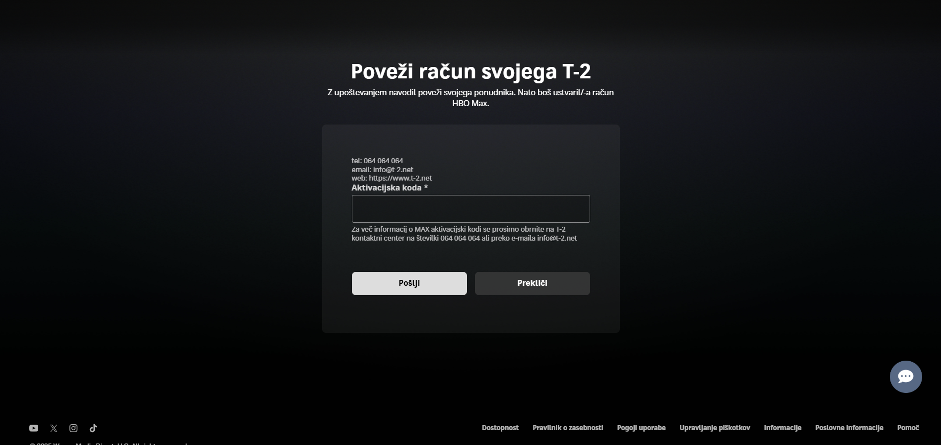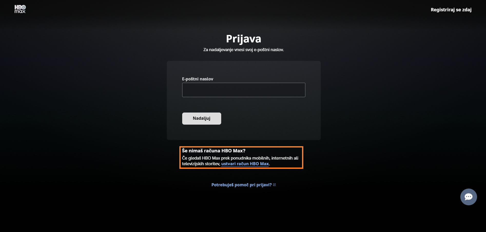 Aktivacija naročniškega razmerja v HBO Max