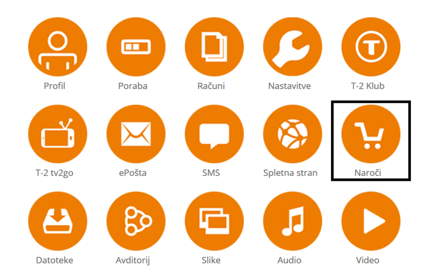 Z uporabniškim imenom in geslom se prijavite v portal Moj T-2. Po vpisu v kategoriji »Naroči« izberite »Televizija«.
