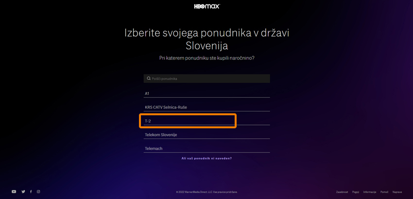 Z vpisom svojega elektronskega naslova, imena in vzdevka, ste uspešno vstopili v HBO Max aplikacijo.