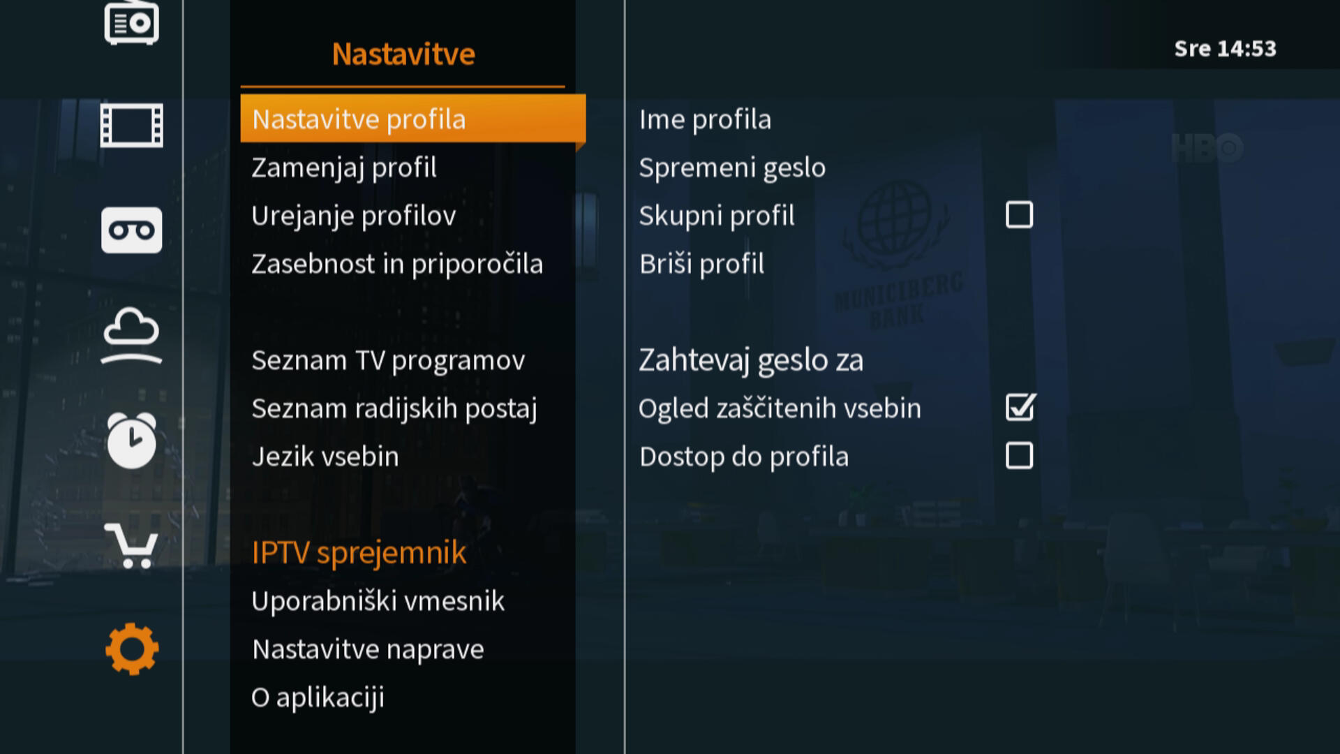 Nastavitve TV profila