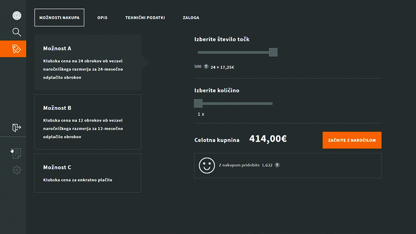 Nakupi preko aplikacije T-2 Klub TV so povsem enaki kot nakupi preko spletne trgovine T-2 Klub. Ob nakupu lahko izbirate med različnimi možnostmi nakupa in številom točk, ki jih želite porabiti.