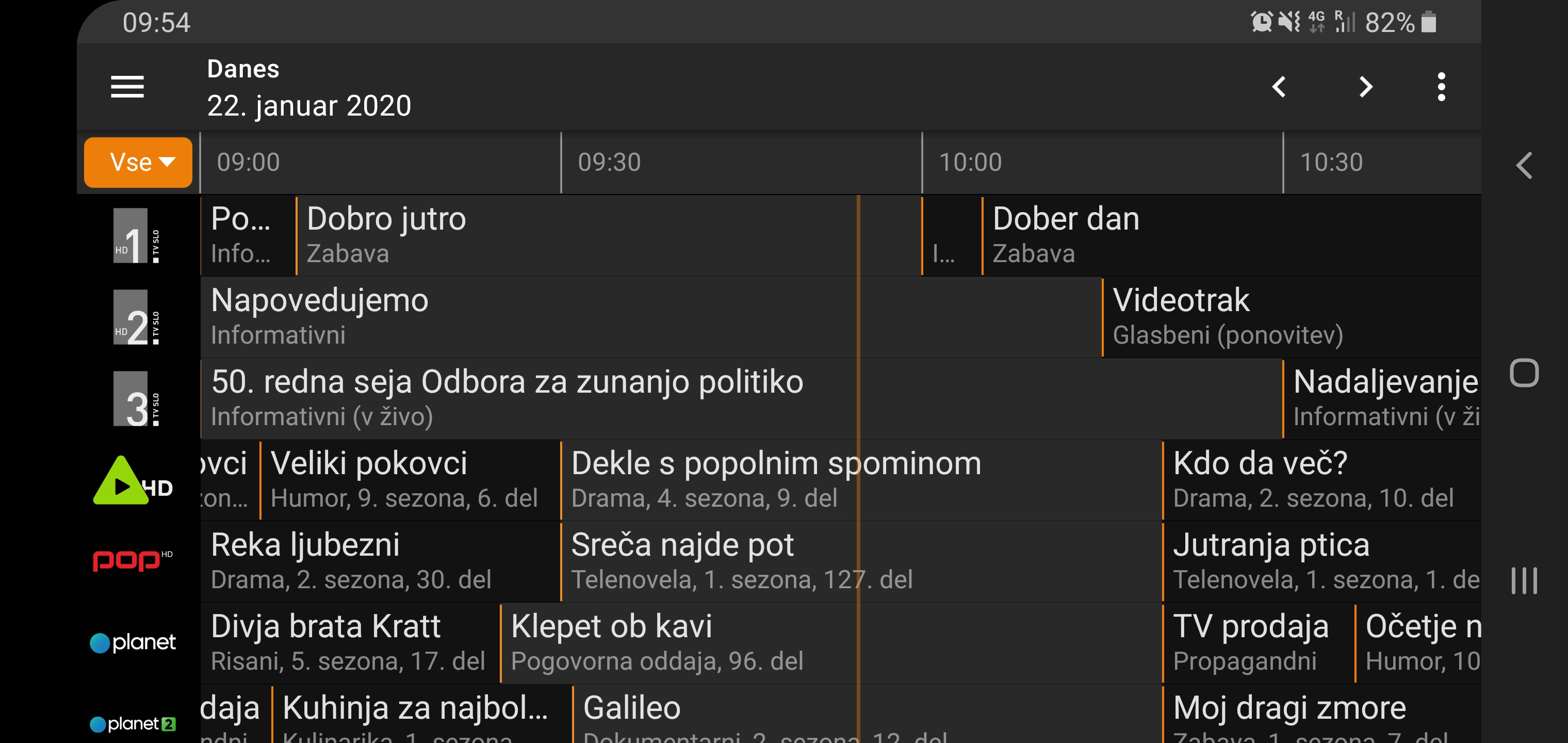 Kot smo bili vajeni do sedaj, je bila trenutna oddaja označena zgolj z oranžno črto, ki je potekala skozi elektronski programski vodič. Za boljšo preglednost nad TV vsebino smo aplikacijo nadgradili tako, da je z rahlo oranžno barvo obarvan celoten pravokotnik posamezne oddaje na programu (v nočnem načinu je predvajana vsebina obarvana sivo). Tako je sam začetek in konec posamezne vsebine na programu precej bolje in jasneje prikazan.