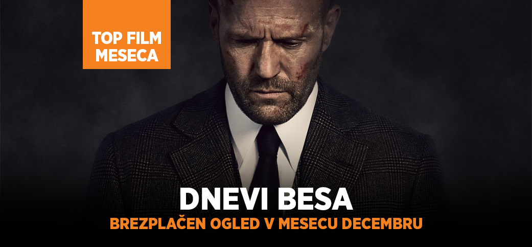 V decembru si brezplačno oglejte TOP film meseca - Dnevi besa. Akcijski film, z Jasonom Stathamom v glavni vlogi, sledi skrivnostnemu in hladnokrvnemu varnostniku H, ki v Los Angelesu dela za podjetje za prevoz denarja in je odgovoren za prevoz milijonov dolarjev po mestu.