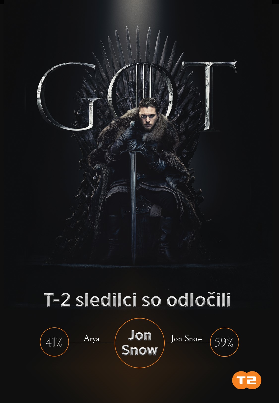 Vzporedno smo na Facebooku in Instagramu vodili tudi anketo, kjer smo vas spraševali, kdo bo na koncu zasedel prestol. Po hudi finalni bitki je Jon Snow s 59 proti 41 v odstotkih premagal Aryo. S tem smo se zavezali, da bomo do 20. maja za Jona pesti stiskali tudi mi.