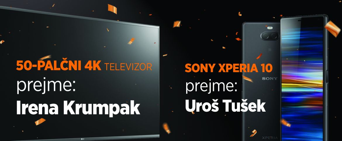 Glavno nagrado – novi LG 4K TV sprejemnik - je osvojila Irena Krumpak, medtem ko je mobilni telefon Sony Xperia 10 osvojil Uroš Tušek.