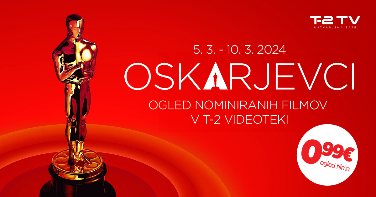 Bliža se podelitev Oskarjev 2024. Ob tej priložnosti bomo v tednu med 5. in 10. marcem omogočili ogled nominiranih in nagrajenih filmov v T-2 videoteki za le 0,99€ za posamezen ogled.
