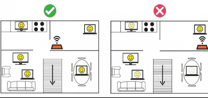 Za brezžični signal velja enostavno fizikalno pravilo, večja kot je oddaljenost od izvora signala, slabši je sprejem. Zato je potrebno usmerjevalnik (router) postaviti na vidno mesto (na višino), v sredino doma, tako bo signal na vseh lokacijah približno enako dober.