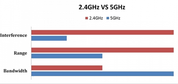 Prednosti: Večji doseg, boljše prehajanje skozi ovire (na primer zidove), boljša podpora (2,4 GHz podpira več brezžičnih naprav kot 5 GHz).