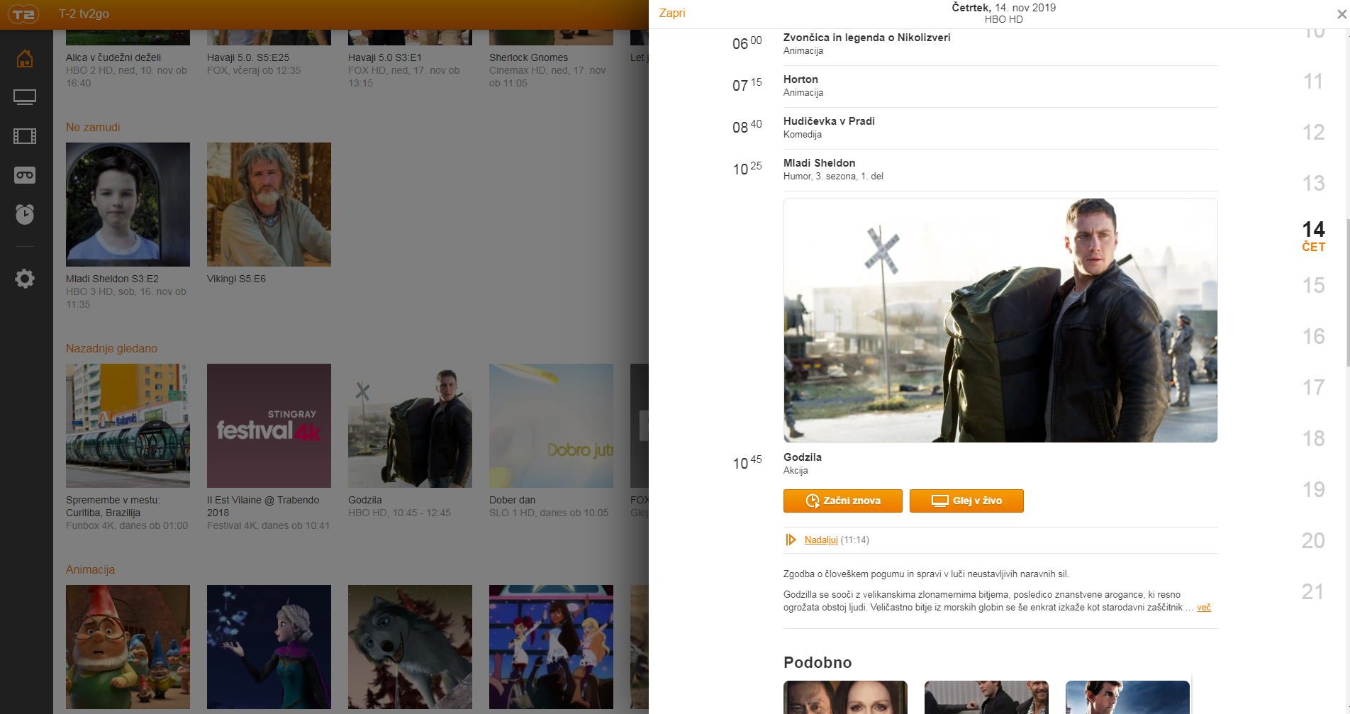 Vaše načrtovanje ogledov lahko poenostavite tudi z uporabo storitve opomnik, ki je na voljo na vseh napravah. Tako si lahko na mobilnem telefonu z uporabo aplikacije T-2 tv2go po sporedu vsebine označite, opomnik pa vas bo na vsebine opozoril, ko bodo na sporedu.