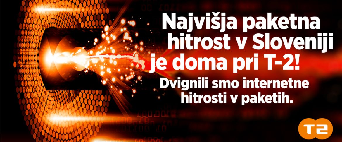 V Ljubljani, 8. decembra 2020: Z današnjim dnem smo v družbi T-2 svojim naročnikom T-2 paketov občutno povišali internetne hitrosti. V naročenih paketih bodo hitrosti segale vse do 750/150 Mbit/s, razpon hitrosti pa se je močno povečal v obe smeri – tako do uporabnika kot pri pošiljanju podatkov v internet. Slednja bo v najvišjem paketu Oranžni diamant segala kar do 150 Mbit/s. Dvignjena hitrost bo v T-2 postala stalni del ponudbe, stroški naročenih paketov pa zato ne bodo višji.