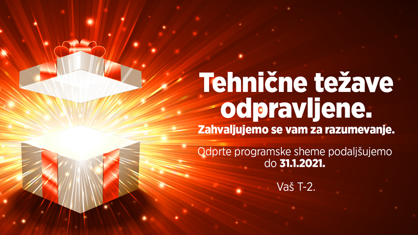 V zadnjih dneh smo se v T-2 soočali s sistemskimi tehničnimi težavami, ki so povzročile kratkotrajne motnje v delovanju IPTV storitev. Težave so naši tehniki že odpravili.