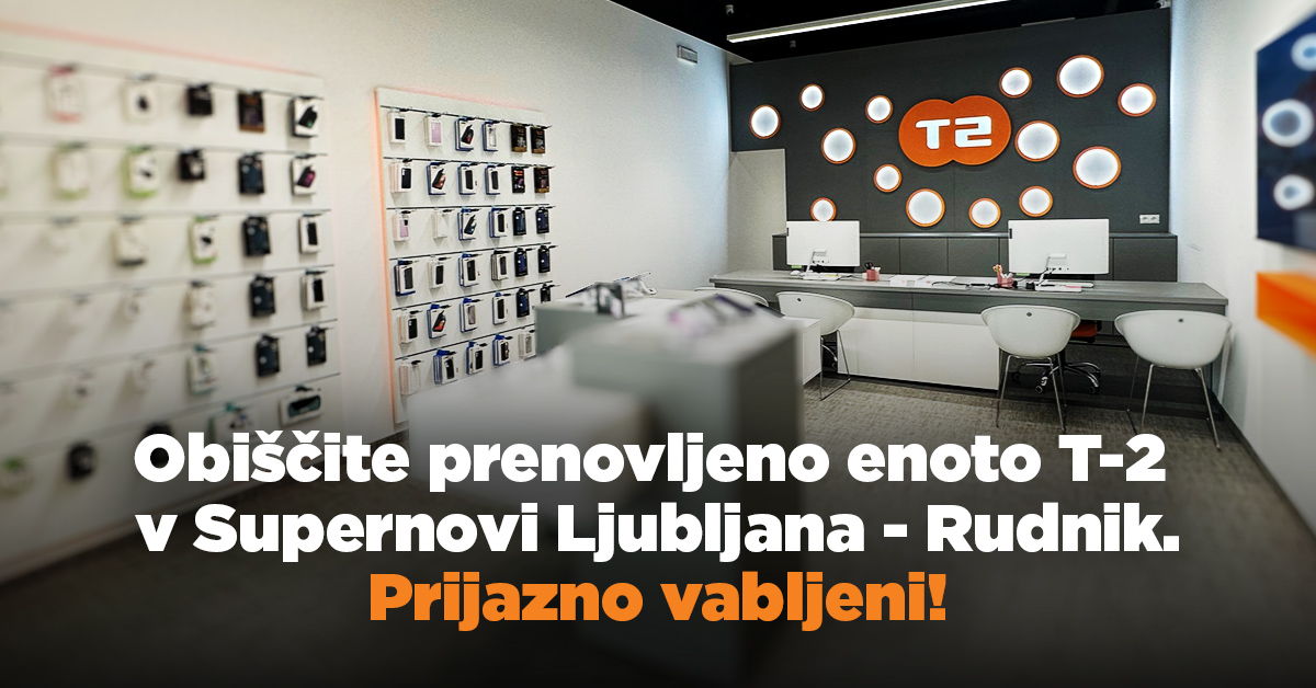Obiskovalce prodajnega mesta T-2 v ljubljanski Supernovi na Rudniku obveščamo, da smo se preselili v novi del nakupovalnega centra. Najdete nas v prvem nadstropju v neposredni bližini kino dvoran Cineplexx.