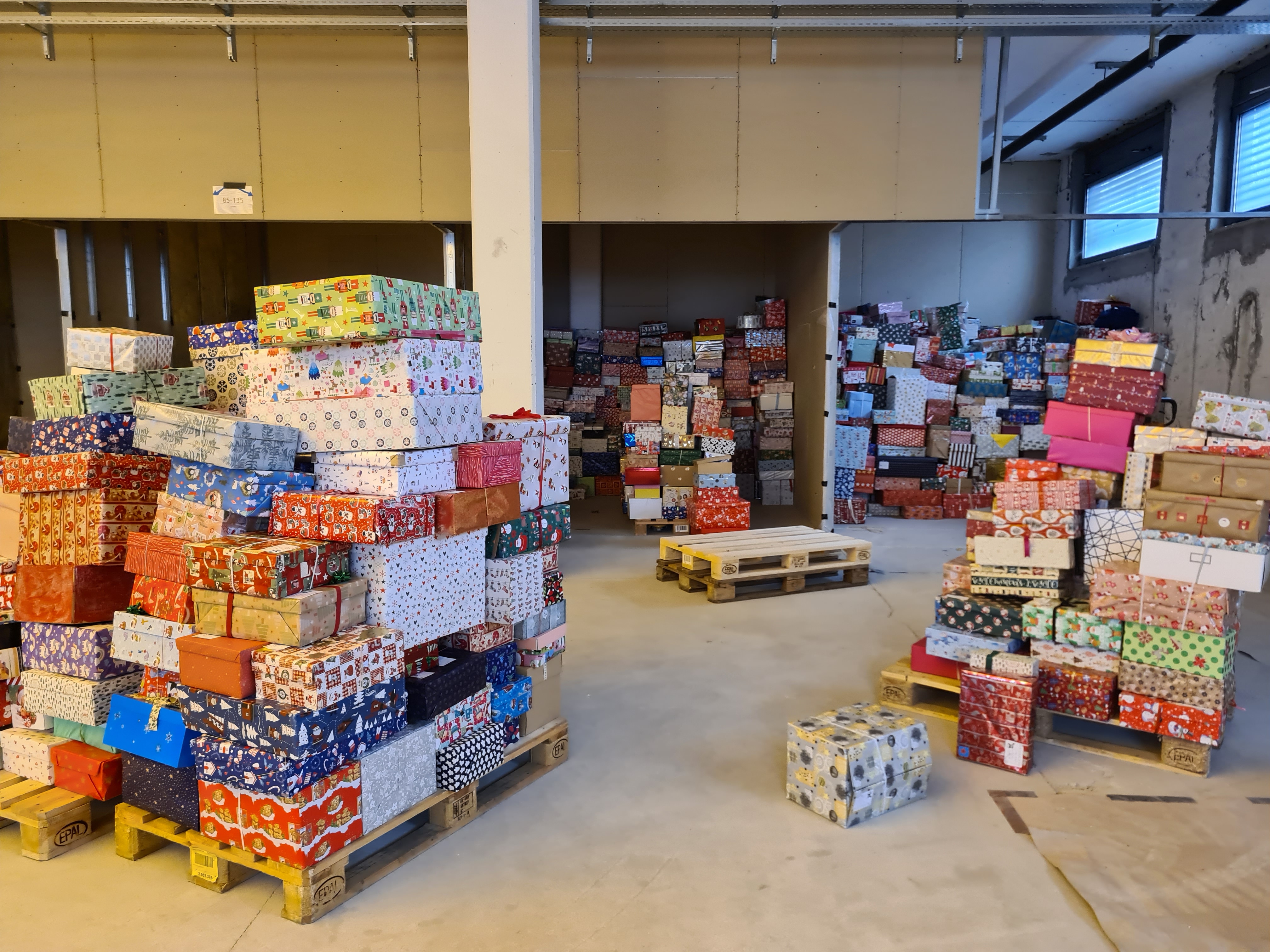 Tako smo včeraj zagrizli v delo in se odpravili na teren. Organizirali smo prevoz daril iz zbirnih mest v centralno Božičkovo skladišče, kjer se že kopičijo pisane škatle presenečenj. Organizatorju smo predali tudi donacijo za pomoč pri dopolnjevanju daril.