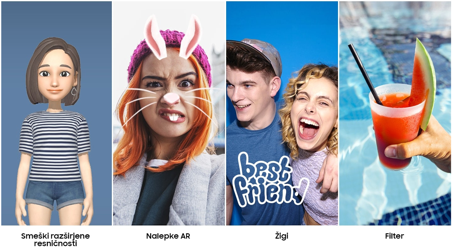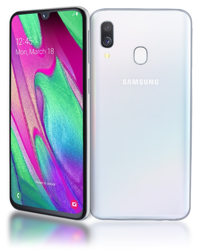 Na zadnji strani pa najdemo poleg bralnika prstnih odtisov za odklepanje telefona še LED bliskavico in dve kameri: ultra-širokokotno kamero ločljivosti 5MP (kot zajema slike 123°) in glavno kamero ločljivosti 16 MP (stalna zaslonka f/1,7). Slednja lahko enako dobro deluje tako ob običajni svetlobi, kot tudi v pogojih slabše svetlobe (ponoči ali v zaprtem prostoru). Nobena od kamer nima sistema optične stabilizacije; glavna kamera je opremljena z AF sistemom. Umetna inteligenca kameri omogoča prepoznati 19 različnih motivov in avtomatsko prilagodi nastavitve za kar najbolj všečno sliko. Med njimi sta tudi HDR in panoramski posnetek. Prav tako Galaxy A40 vam ponuja še več načinov za izražanje vaše ustvarjalne plati. Ustvarite lastne smeške razširjene resničnosti in jih pošljite prijateljem. Vsaki fotografiji dodajte nalepke. Vsako fotografijo naredite zabavno z izborom filtrov in znamk.