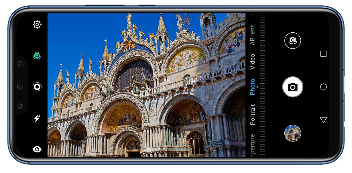 Kot pri večini modelov nas tudi Mate 20 Lite kljub oznaki za »vstopno« različico modela Huawei ni pustil hladne. Značilno ohišje iz aluminija in stekla z zaobljenimi robovi vam bo gotovo všeč od prvega trenutka dalje. Zaslon zaseda celotno sprednjo stran z izjemo zareze na zgornjem robu: tu najdemo dvojno (24 MP + 2MP) selfie kamero in slušalko. 6,3-palčni (16 cm) FullHD+ zaslon ima ločljivost 2340 x 1080p. Selfie-kamera je dvojna: širokokotna 24 MP z zaslonko F2,0 + 2 MP kamera s senzorjem globine. Selfie-kamera omogočata tudi HDR posnetek, izbiro 8 scenskih načinov in video z ločljivostjo 1080p pri hitrosti 30 sličic na sekundo. Prav tako je dvojna glavna kamera na zadnji strani: širokokotna 20 MP f1,8 z avtofokusom in 2 MP z senzorjem globine, nastavljivo LED bliskavico, možnostjo panoramske in HDR fotografije in videa z ločljivostjo 1080p. Zanjo je na voljo kar 22 scenskih načinov. Delovanje kamer podpirata ločen slikovni procesor in napredna programska oprema z umetno inteligenco in možnostjo številnih funkcij, kot so 3D Emojis emotikoni. Vgrajena je tudi možnost 16x upočasnjenega posnetka (slow-motion) s 480 sličicami. Umetna inteligenca vam celo pomaga pri urejanju galerije posnetkih fotografij in iskanju na podlagi kraja posnetka, posnete osebe ali drugega kriterija.