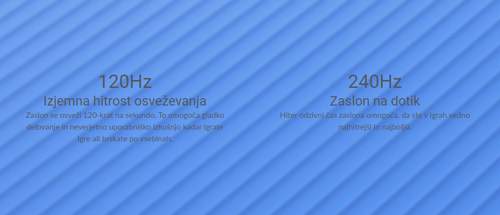 Čudovit, minimalističen in eleganten dizajn ohišja z vgrajenim senzorjem prstnih odtisov ob strani. Telefon je na voljo v očarljivi modri barvi.