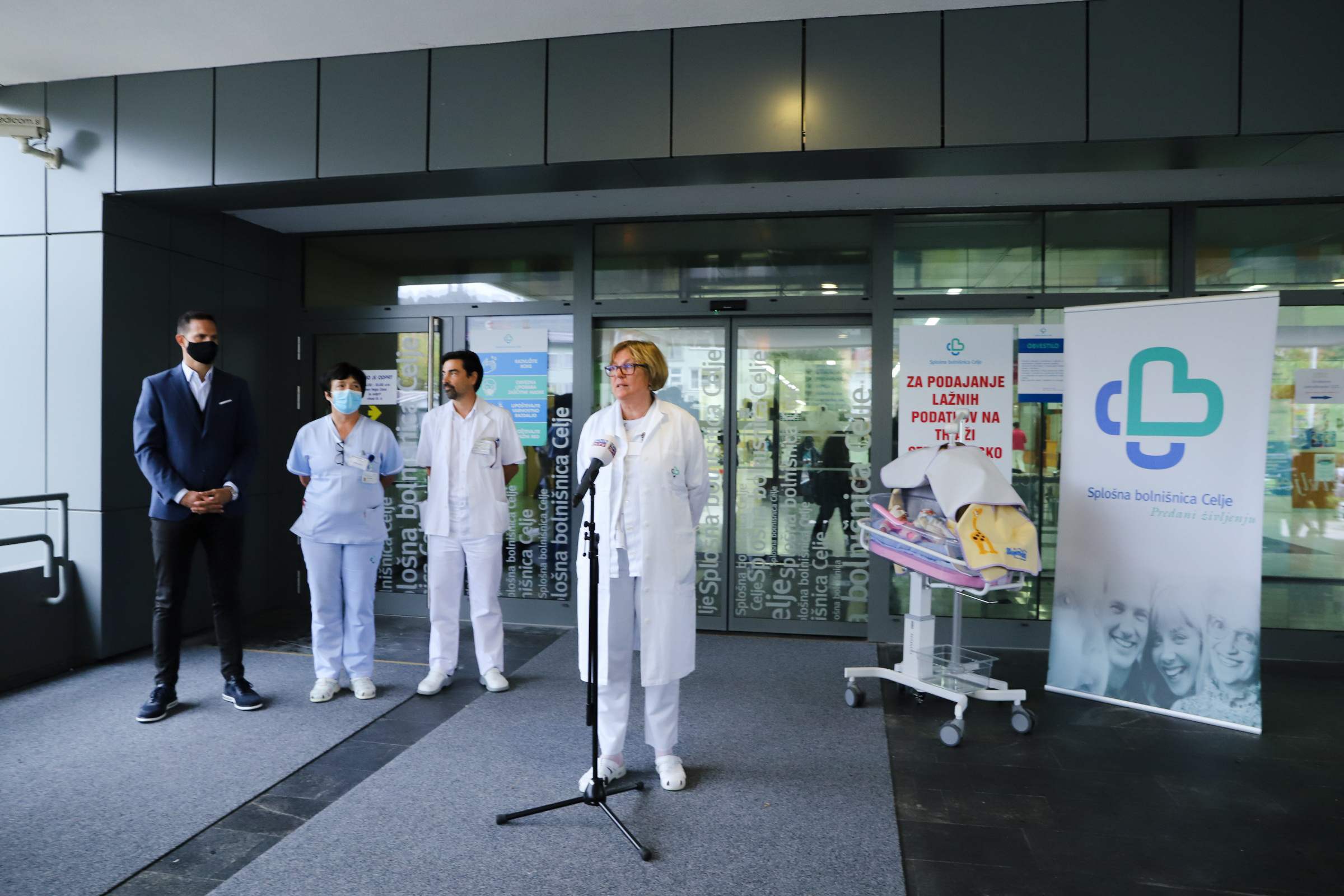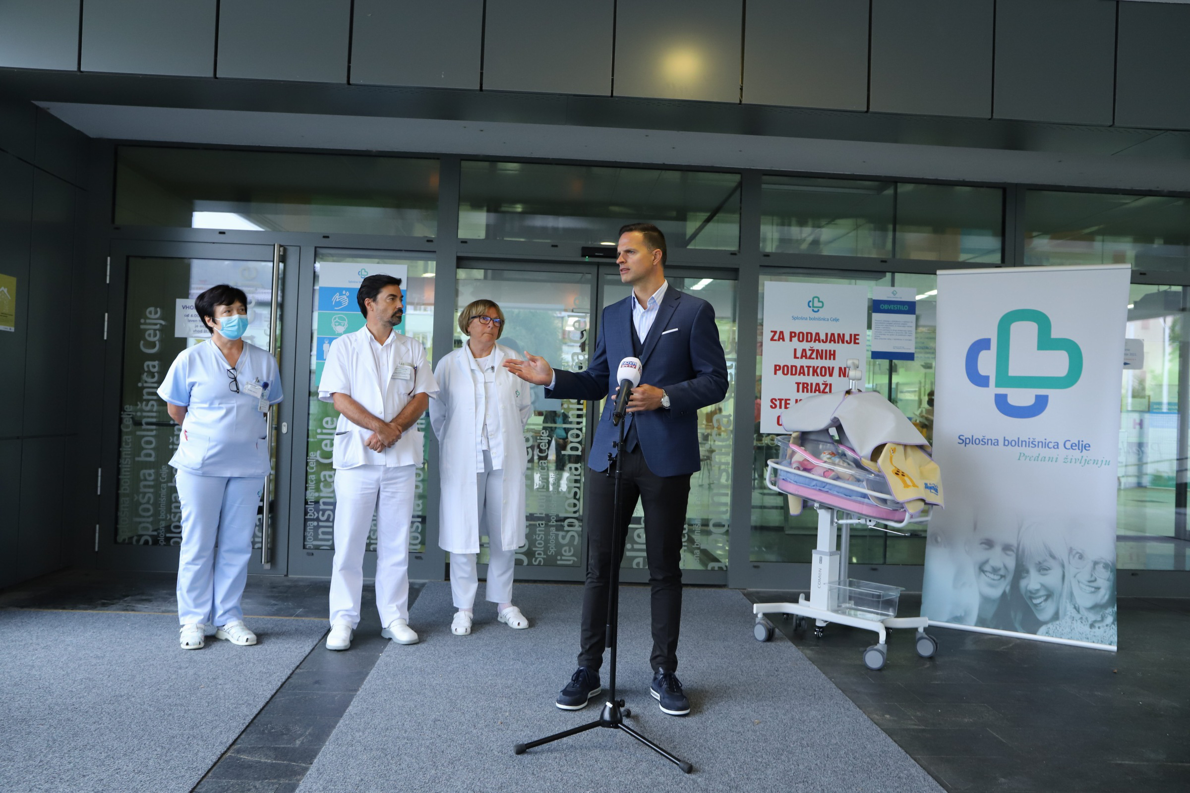 Na priložnostni slovesnosti, ki je potekala na zunanjem prostoru pred celjsko bolnišnico, so uradni predaji prisostvovali predstojnik ginekološko porodnega oddelka mag. Jakob Koren, dr. med., specialist za ginekologijo in porodništvo, vodja neonatalnega odseka Ana Ilijaš Trofenik, dr. med., spec. pediatrije, glavna sestra oddelka Marija Šišmanović, vodilna sestra odseka za neonatalno pediatrijo Jasna Biliban in Gregor Štampohar, član poslovodstva družbe T-2, zadolžen za področje prodaje in marketinga.