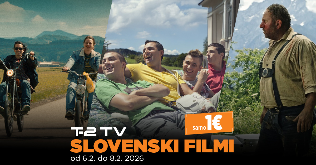V okviru akcije bodo od 6. do 8. februarja 2026 vsi slovenski filmi v T-2 videoteki na voljo po akcijski ceni 1 € na film. Ogled filmov poteka na zahtevo, brez vezave na spored ali čas predvajanja, kar omogoča prilagodljiv in preprost dostop do vsebin.