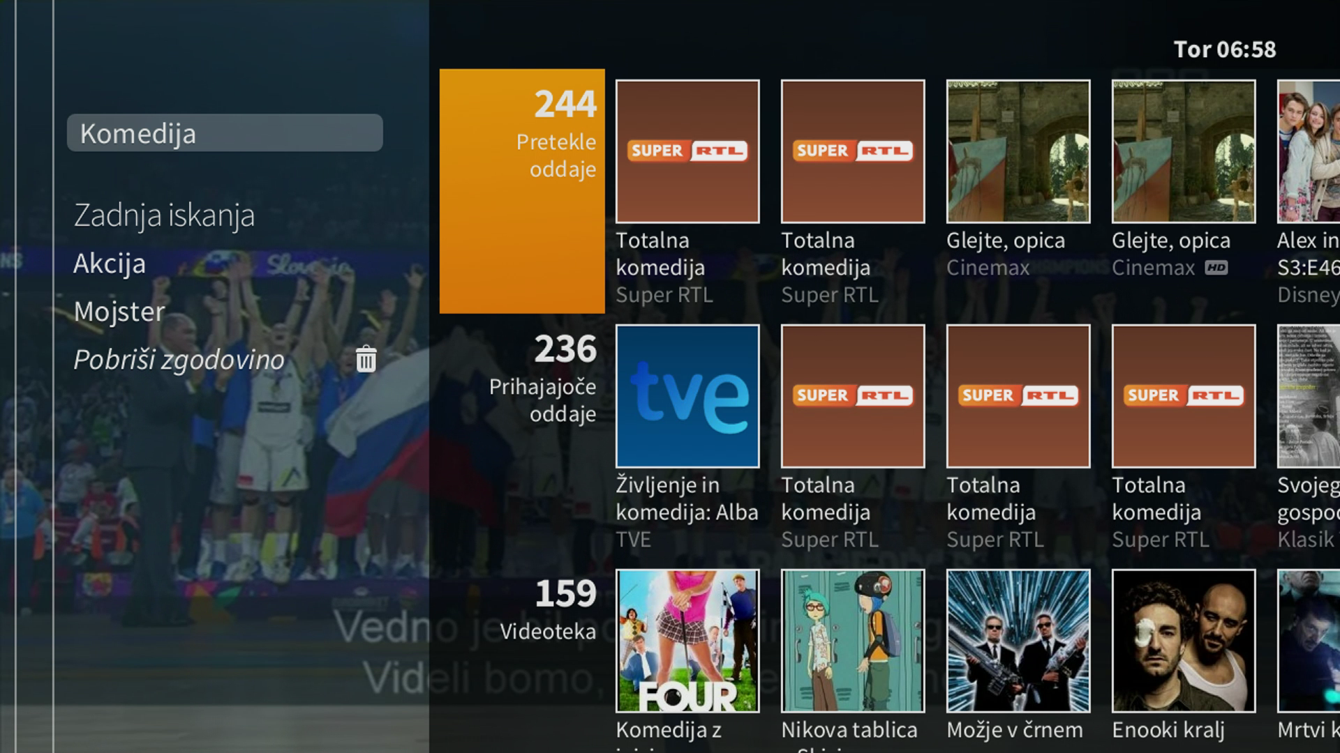 Mobilni uporabniki storitve T-2 tv2go domači zaslon že poznajo, sedaj pa tega omogočamo še na TV. Poleg kategorij, kot sta »Nazadnje gledano« in »Predvaja se«, dodajamo še nekaj novih kategorij vsebin (»Top oddaja«, »Šport«, »Za otroke«, »Novo v videoteki«, »Izposojene vsebine« …).