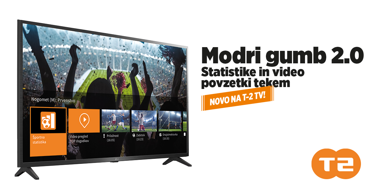 Preizkusite T-2 TV in glejte nogometne tekme, nastope naših smučarjev in ostale športne prenose z Modrim gumbom 2.0 v kateremkoli internetnem omrežju v Sloveniji in EU.