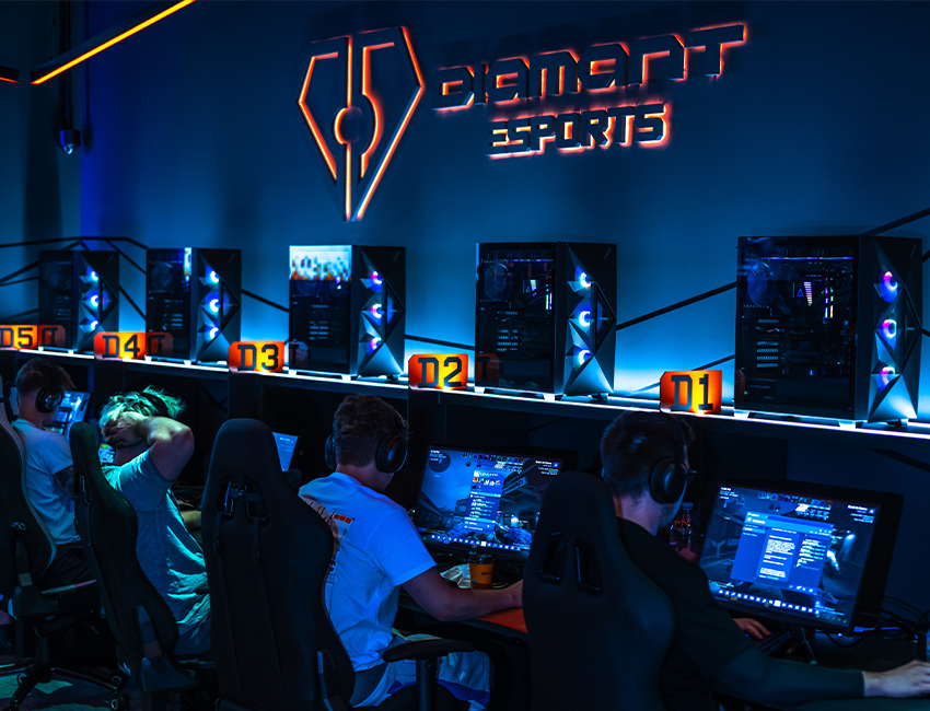 Najprej: 10 sodobno opremljenih igralnih postaj z najnovejšimi računalniškimi igrami, možnost igranja na konzoli PlayStation za 2 do 4 igralce in kotiček za vse nostalgike, ki prisegate na retro klasike. Lahko se povežete z drugimi igralci, sestavite ekipo, tekmujete, ali pa se enostavno sprostite ob igri. Včasih se vam bo pridružila tudi profesionalna ekipa Diamant Esports, s katero lahko izmenjate trike ali odigrate skupinski dvoboj.