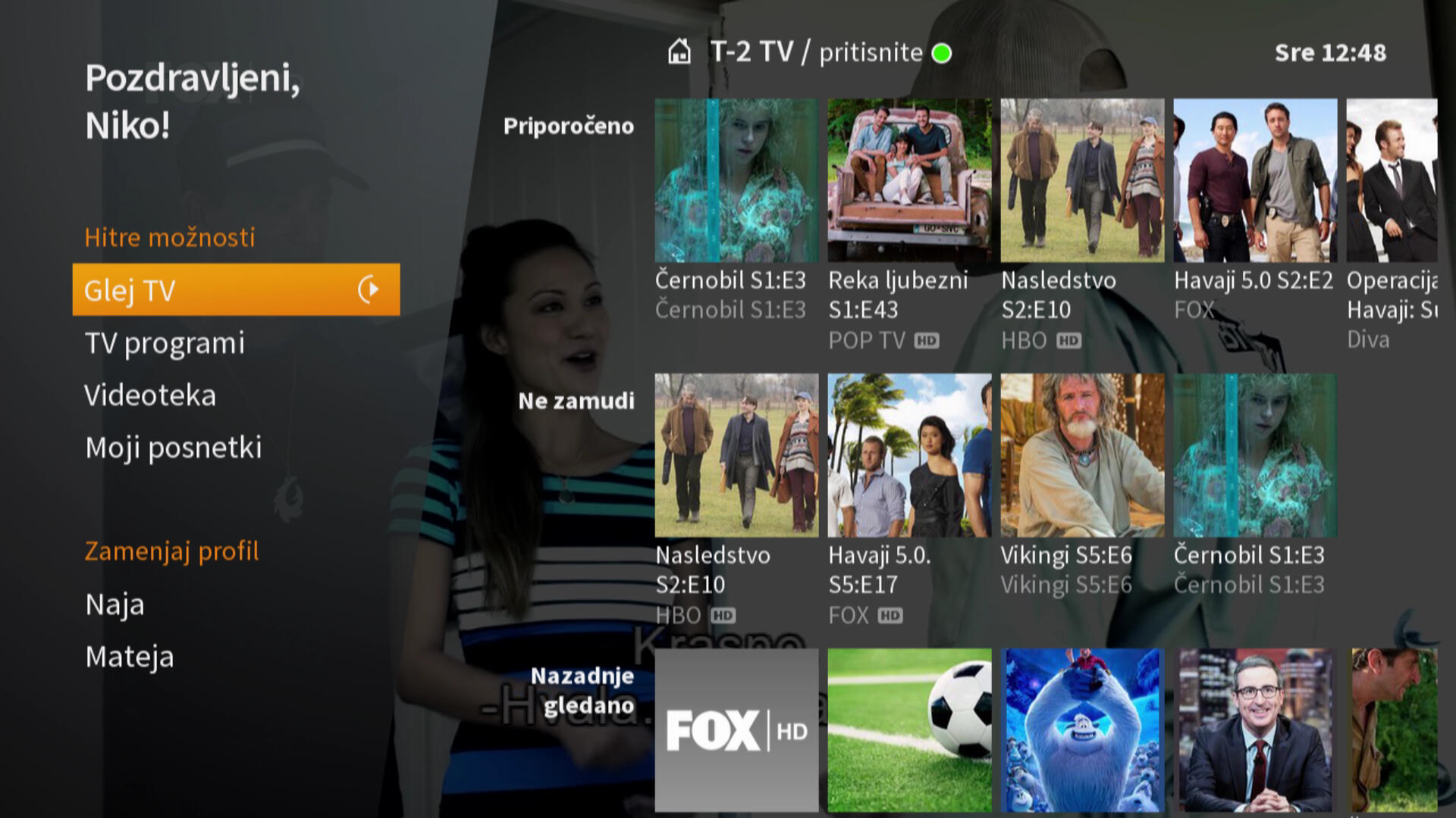 Domači zaslon je vstopna točka v vaše najljubše TV vsebine. Zagotovo ste si že kreirali svoj uporabniški profil na T-2 televiziji in s pomočjo tv2go razvrstili TV programe po svojem okusu in gledalskih navadah? Če še niste, je sedaj zagotovo pravi čas, saj so vam ob vstopu v TV pod lastnim profilom na voljo vsebine, ki so namenjene prav vam in vašem okusu.