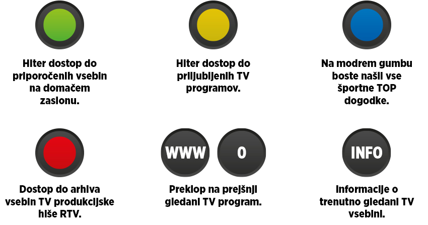 Spoznajte hitre gumbe. Z njimi boste v hipu preklopili v domači zaslon, si ogledali najboljše trenutke tekem ali preklopili v vsebine aplikacije RTV 4D.
