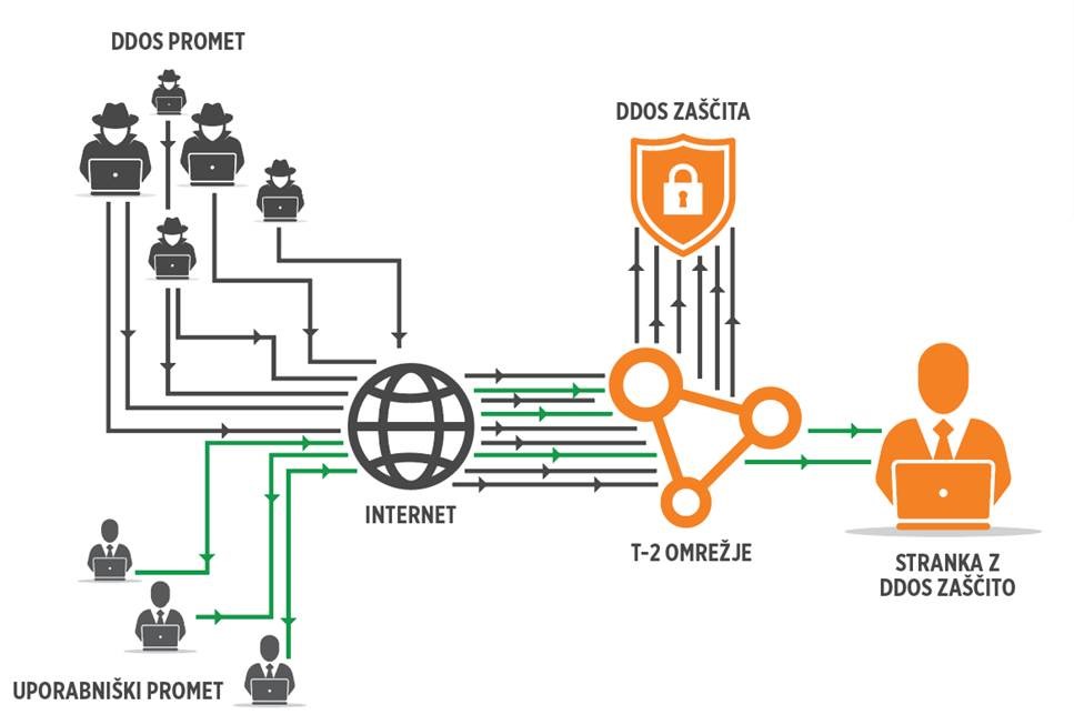 T-2 ponuja DDoS zaščito za naročene internetne hitrosti od 10 Mbit/s pa vse do 1 Gbit/s.