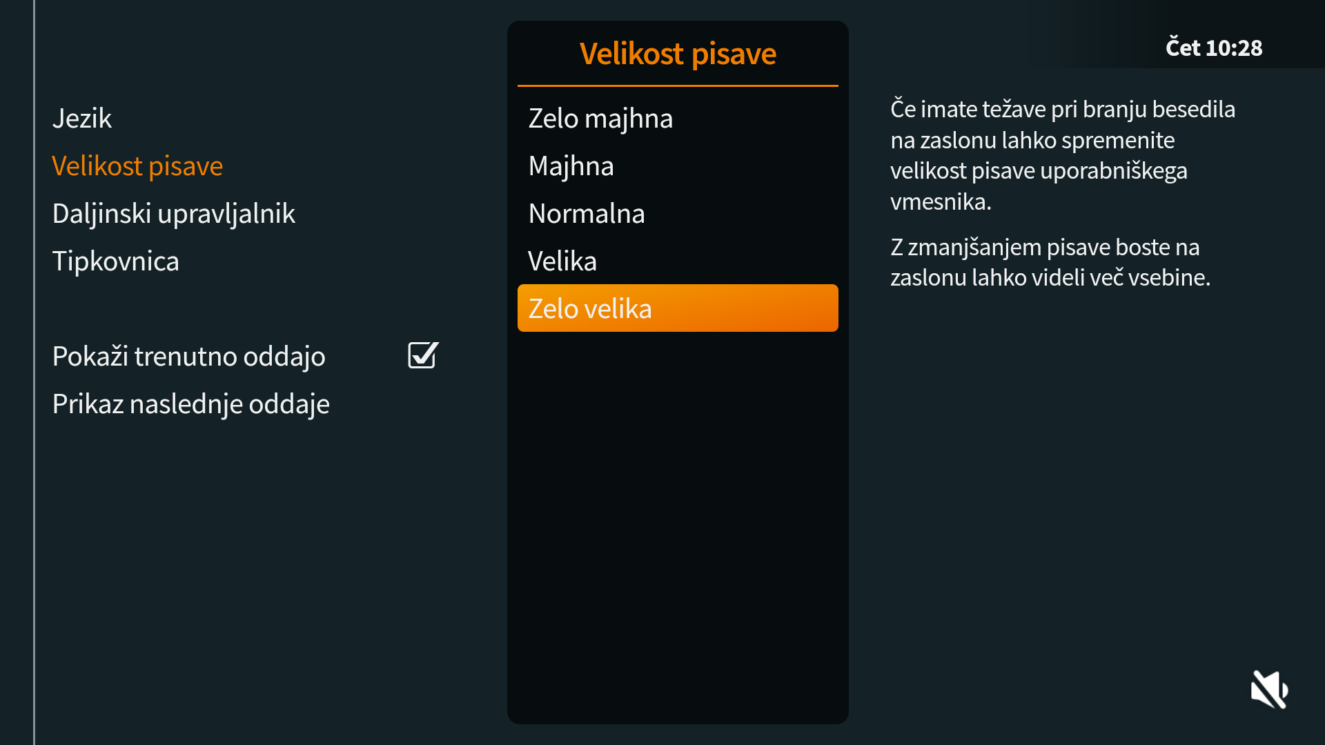 • Velikost pisave: V nastavitvah grafičnega vmesnika lahko spremenite velikost pisave, da je prikaz vsebin bolj pregleden in berljiv.